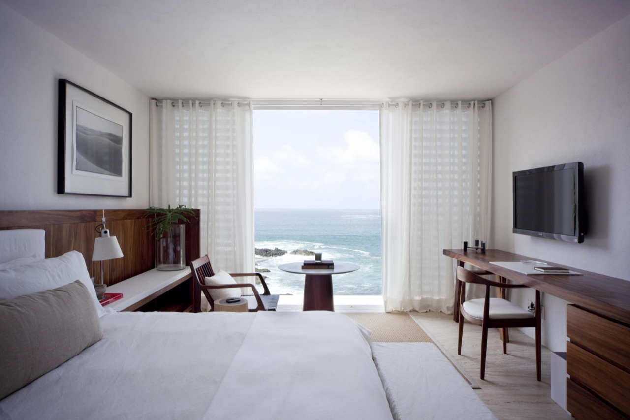 Enveloping spaces in white prisms, the wooden interiors stay sheltered from the exterior, while staying introverted and integrated to context. Due to the importance of vegetation and visual environment of the area, the interiors blend at all times with the latter elements. Facing the ocean, the spaces are oriented to seek shelter from the sun, in a sober and quiet atmosphere, with the idea of letting the natural environment surrounding the site be the main character.